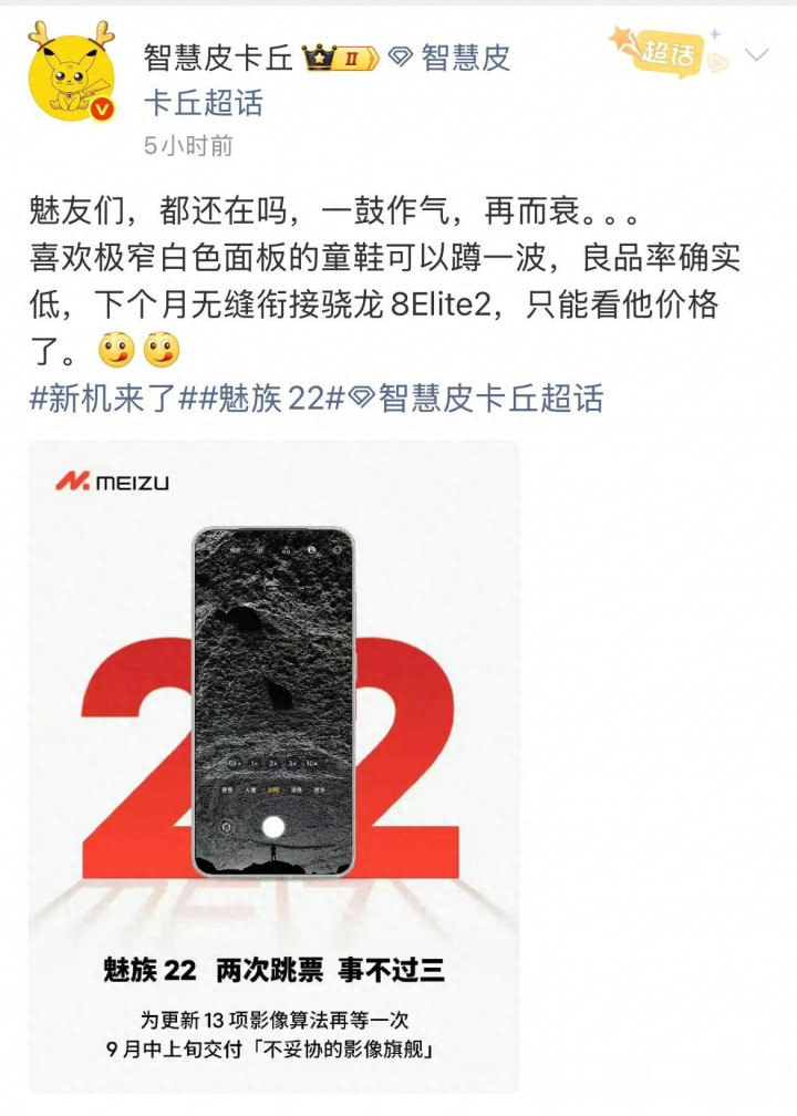 魅族22以“工艺情怀”对抗同质化,但良率与定价仍是悬念。若真能兼顾极窄白边框、骁龙8 Elite2及合理定价,或许能唤醒“煤油”的热情。